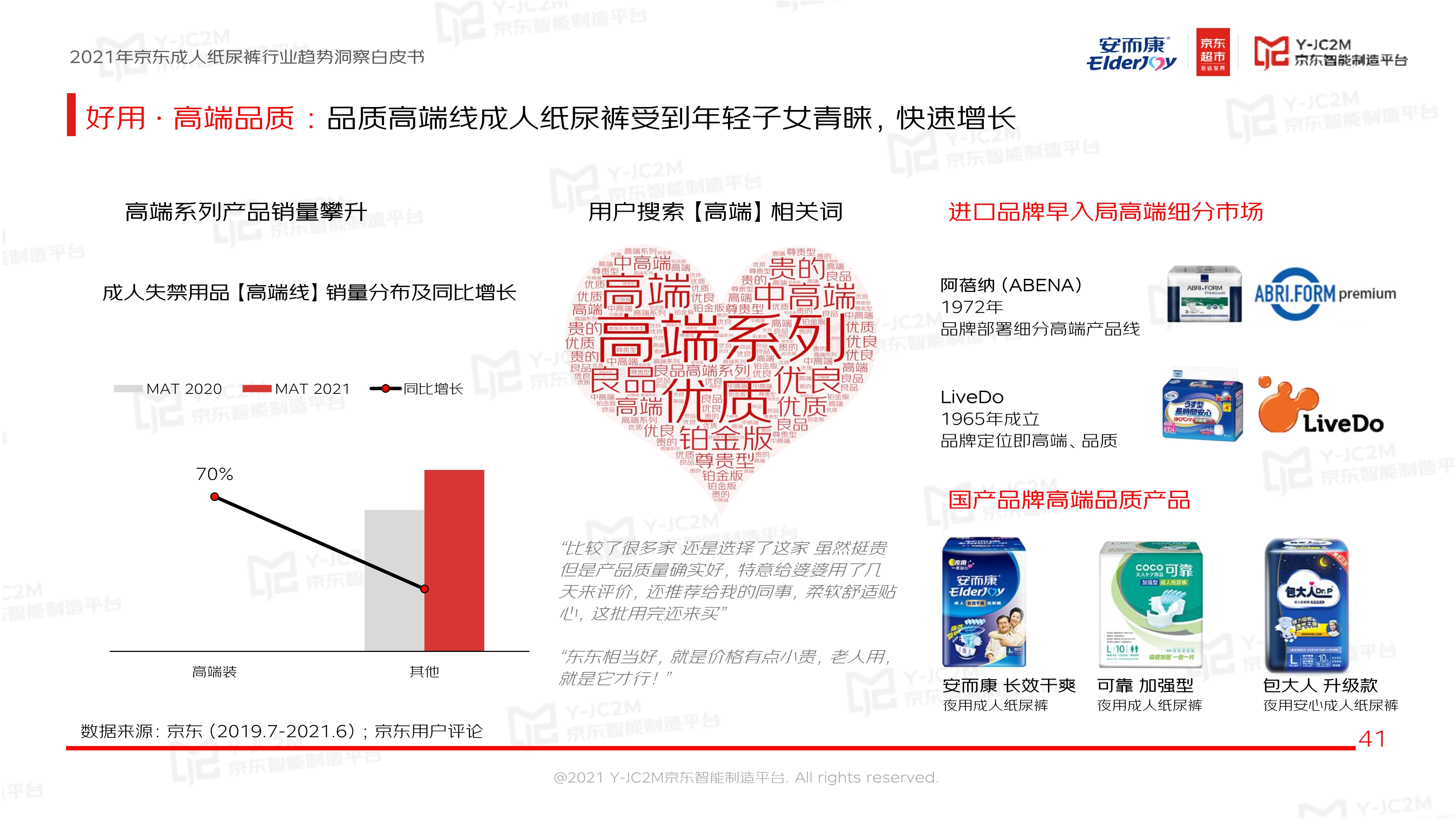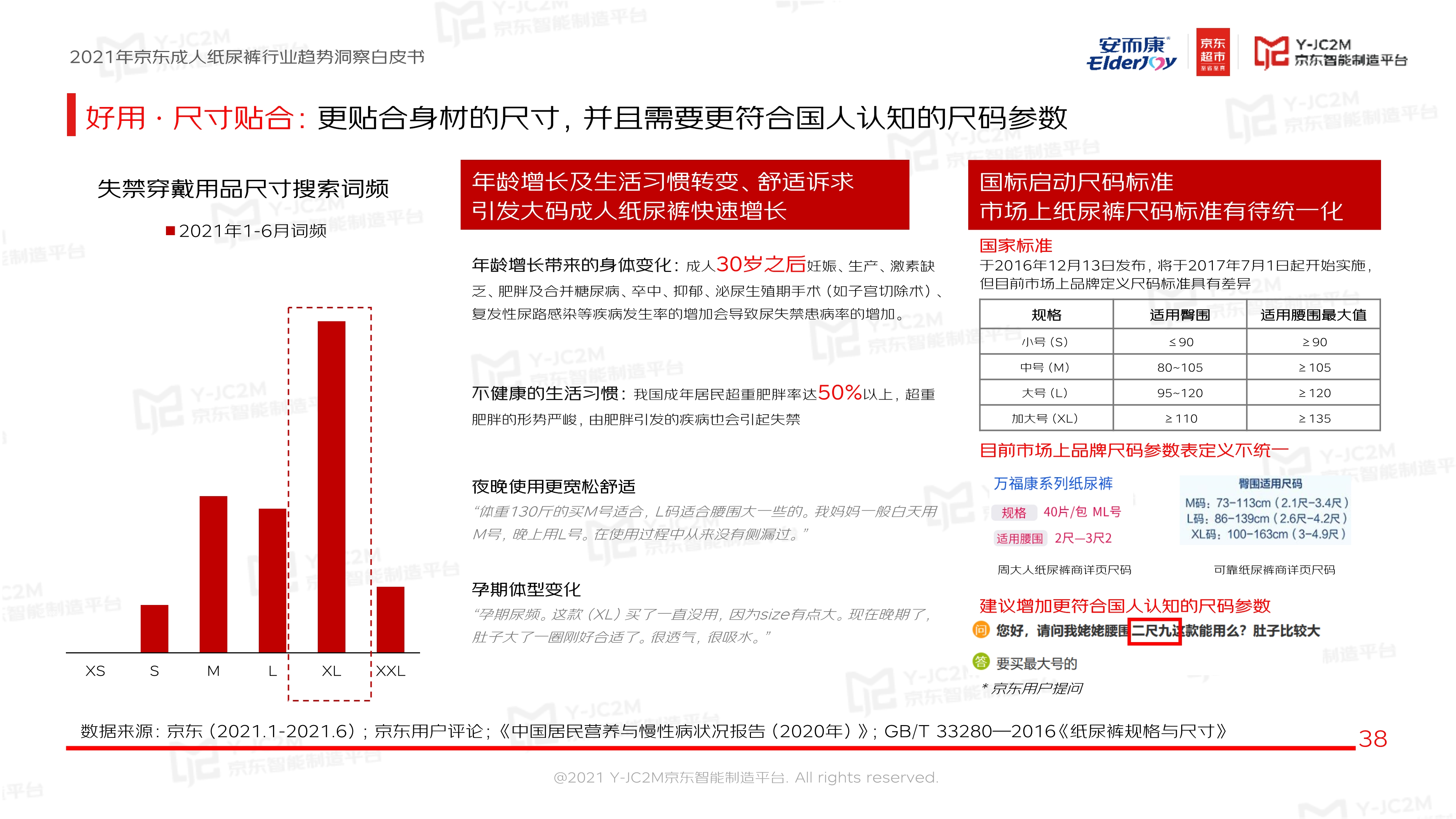 时: 2023-01-07近日,快盈VIII旗下成人纸尿裤品牌安而康联合京东智能制造平台共同发布《2021年京东成人纸尿裤行业趋势洞察白皮书》(下称《白皮书》),从行业概况、品牌格局、用户洞察、趋势展望四个维度,结合销量数据与消费者,深入剖析了随着我国步入老龄化社会以及消费观念不断升级,国内纸尿裤市场的全新变化与发展趋势。